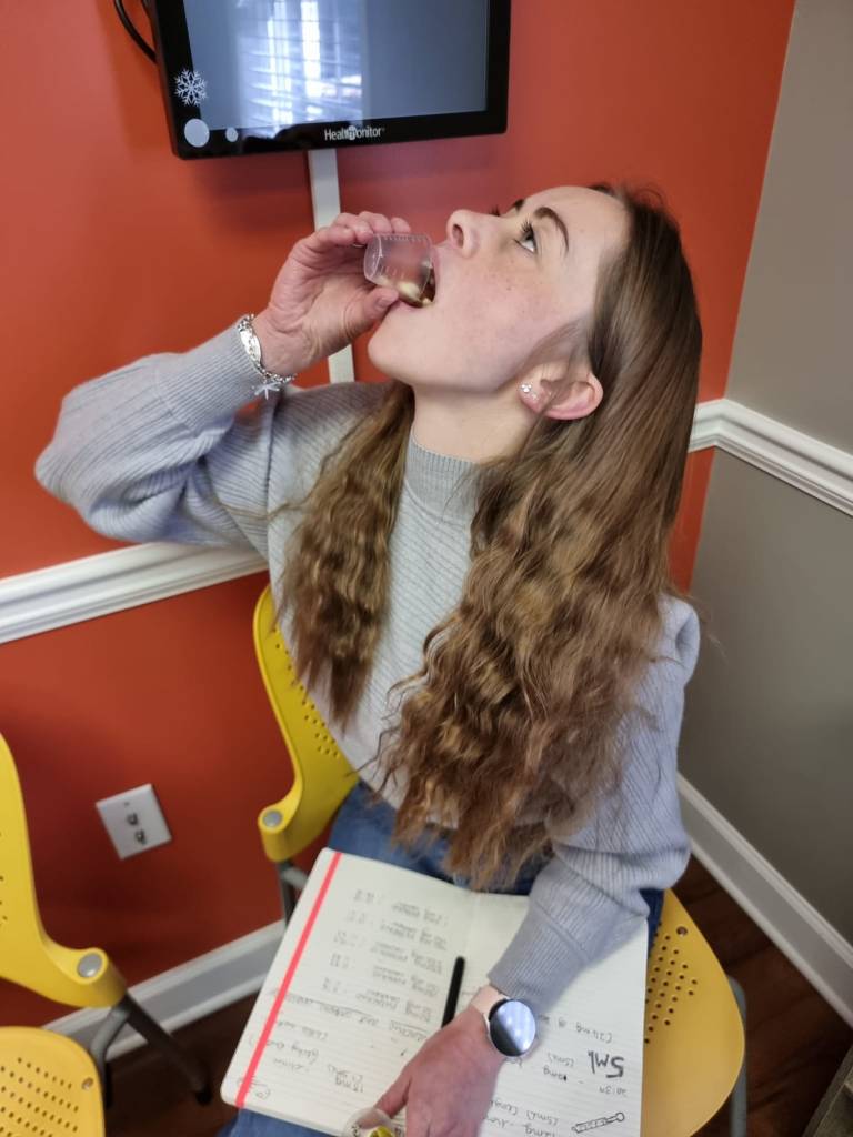 The challenge took about an hour and half from start to finish and then Amanda gave me my second dose of peanut solution (18mg again). Again, itchy throat and a small hive on my lip. Then another observation period and vitals checked. I was getting tired by this point – the adrenaline of eating nuts sure makes you feel sleepy!
